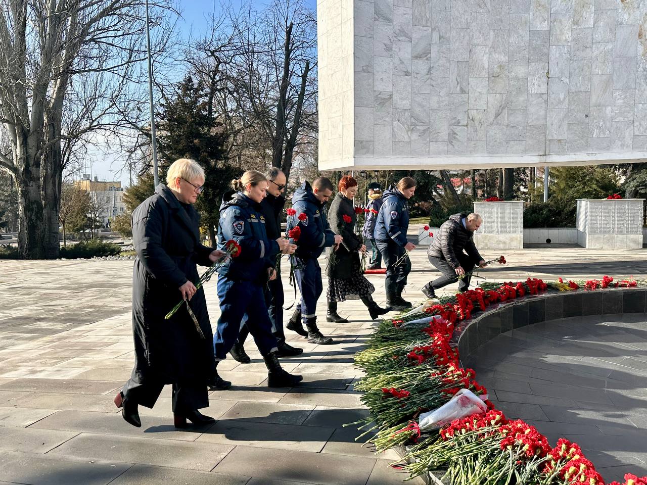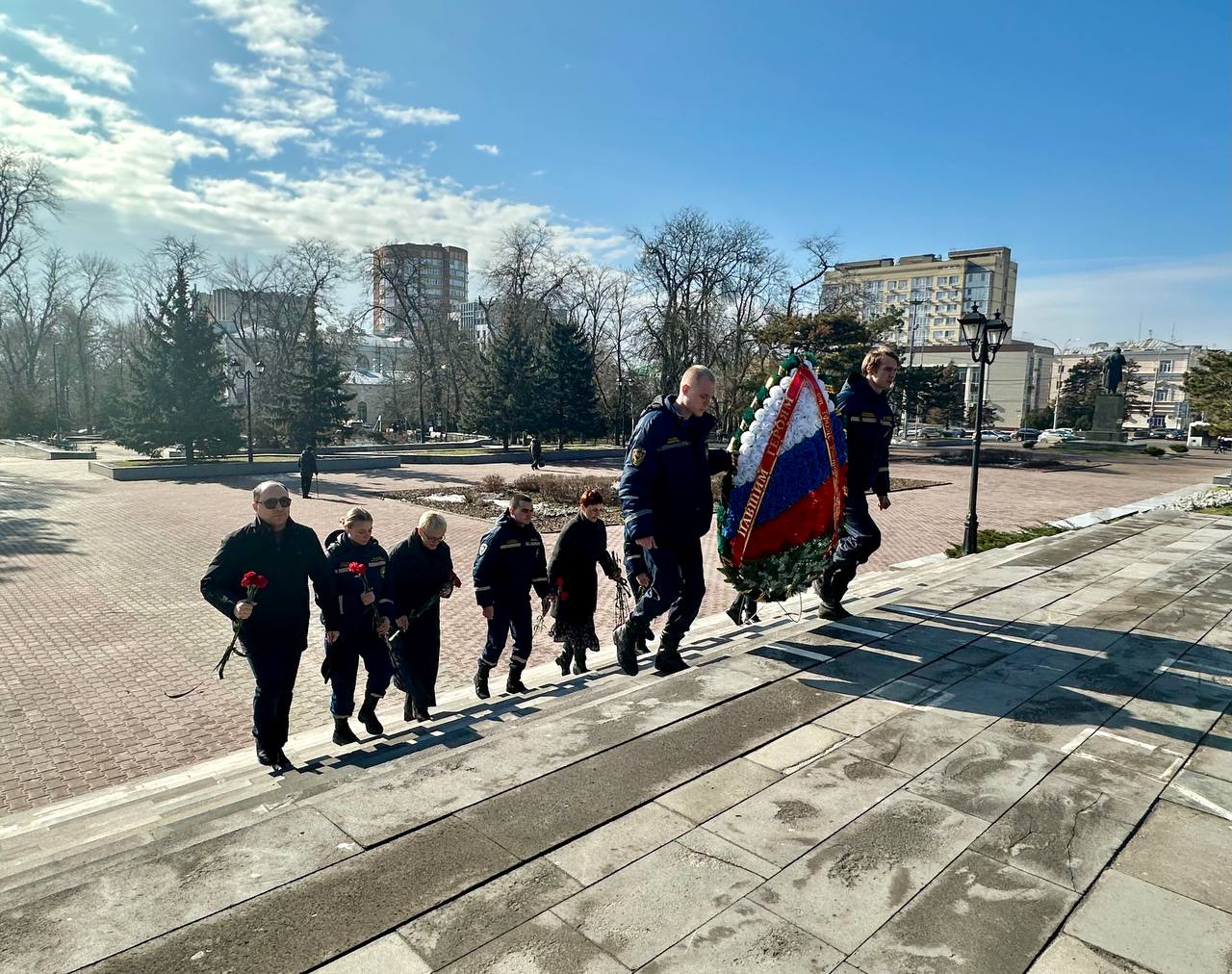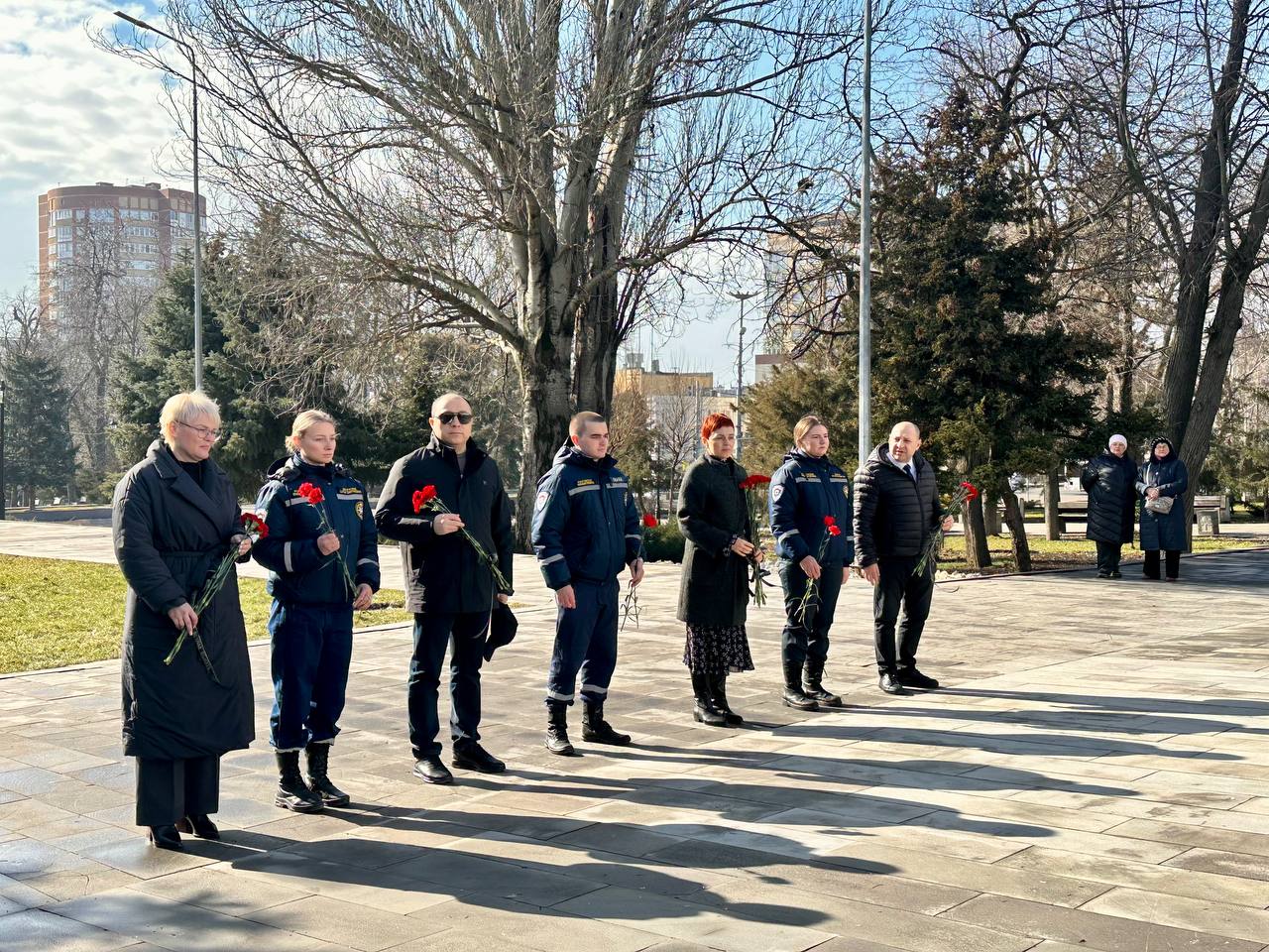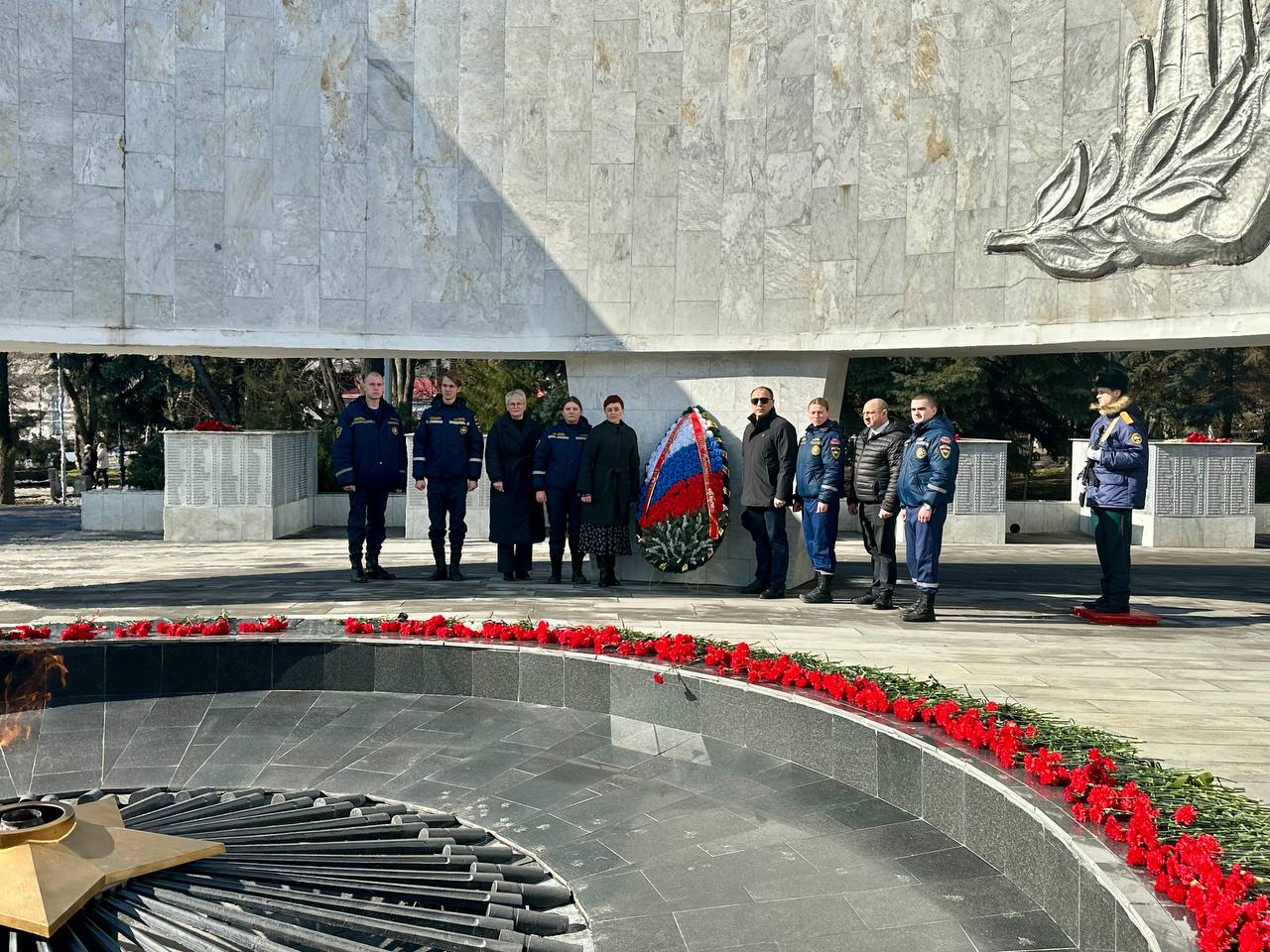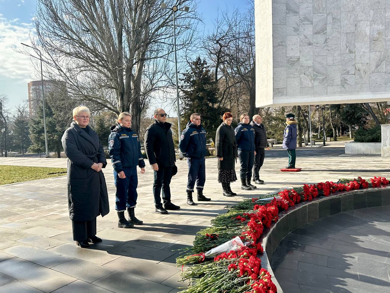 24 февраля 2026 года работники ТФОМС Ростовской области совместно со Всероссийским студенческим корпусом спасателей Ростовской области провели торжественную церемонию возложения венков и цветов к мемориальному комплексу «Павшим воинам», приуроченную к празднованию Дня защитника Отечества.